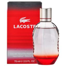 Lacoste Style In Play "Red" przeznaczony jest dla zwycięzców. Oni wiedzą, że sukces nie przychodzi łatwo, ale się nie poddają, z dystansem przyjmując porażki. Lacoste Red ma sportowy, dynamiczny charakter: jest męski i energetyzujący. Odurzające połączenie kontrastującej świeżości i zmysłowości. Flakon: inspiracją dla formy flakonu było unikatowe sportowe dziedzictwo Lacoste. Grube szkło nawiązuje do kształtu piłki do gry w rugby. Faktura flakonu została ożebrowana, aby dobrze trzymał się on dłoni. Intensywna czerwień w podstawie emanuje energią i magnetyzmem. Opakowanie komunikuje ruch i energię.
