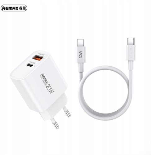 ŁAD SIEC REMAX CABLE SET 20W RP-U120 USB/USB-C + KABEL USB-C/USB-C WHITE