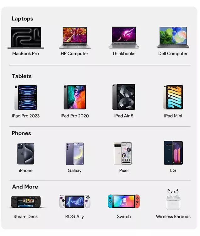 Bez względu na to, czy używasz iPhone’a, MacBooka, Samsunga, iPada czy Nintendo Switch — PA-C6 poradzi sobie z każdym z nich. Obsługuje najpopularniejsze protokoły szybkiego ładowania, w tym QC3.0, PD3.0, PPS i Apple 2.4A. Dzięki napięciu wejściowemu 100–240 V i częstotliwości 50–60 Hz działa bez zarzutu w każdym kraju. Wtyczka EU pasuje do polskich gniazdek bez przejściówek.