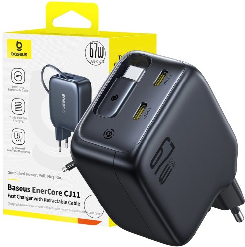 Ładowarka Baseus Ładowarka ścienna EnerCore CJ11 67W 2xUSB-C z chowanym kablem USB-C 0,8 m czarny E0121E00 (6932172696498)