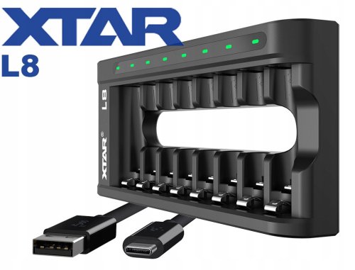 Xtar L8 posiada osiem niezależnych gniazd, co umożliwia jednoczesne ładowanie od 1 do 8 akumulatorów. To doskonałe rozwiązanie dla osób, które potrzebują ładować wiele akumulatorów równocześnie, co znacząco zwiększa efektywność pracy w biurze.