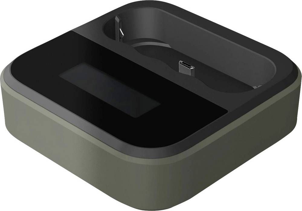 Wyjątkowa, zajmująca niewiele miejsca konstrukcja stacji dokującej utrzymuje ładowarkę ReCyko w pozycji pionowej. Jest zasilana przez złącze USB, dzięki czemu idealnie nadaje się do użytku domowego i biurowego. Po podłączeniu ładowarek, wyświetlacz LCD na stacji dokującej pokazuje stan naładowania każdego z akumulatorów, a także ich kondycję, przypominając o konieczności wymiany zużytych egzemplarzy.