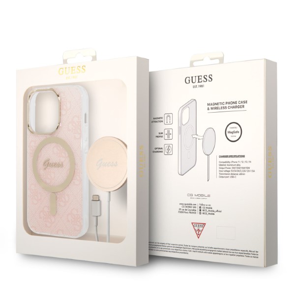 Ładowarka Guess Zestaw Guess etui + ładowarka bezprzewodowa GUBPP13LH4EACSP Apple iPhone 13 Pro różowy/pink hard case 4G Print MagSafe