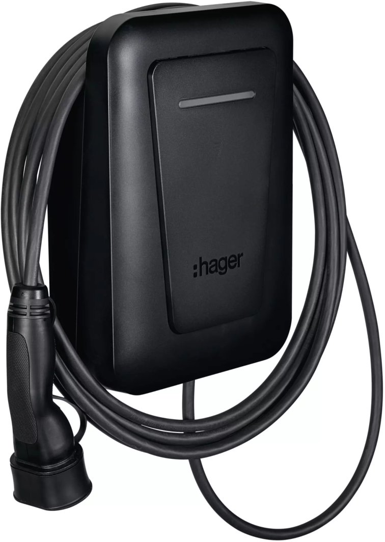 Wyposażona w kabel o długości 6,5 metra z wtyczką typu 2, stacja ładowania Hager Witty One zapewnia dużą elastyczność podczas ładowania. Dzięki temu można łatwo podłączyć pojazd, niezależnie od jego lokalizacji w pobliżu stacji.