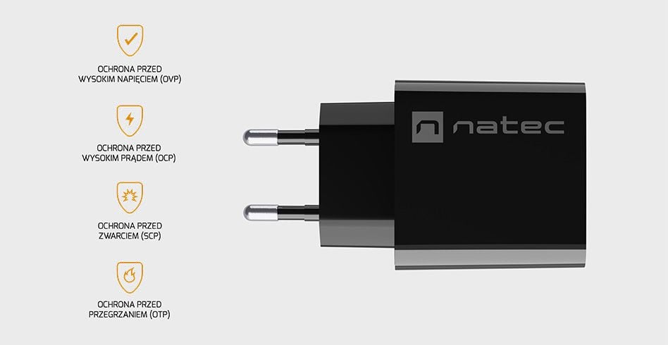 Inteligentne ładowanie to nieodłączna część Natec Ribera. W sposób automatyczny dobiera ona optymalne ustawienia do podłączonych urządzeń. Wszystko po to, aby nie wpłynąć negatywnie na kondycję Twojej elektroniki i przekazać energię w bezpieczny sposób, dzięki czemu możesz cieszyć się sprzętem jeszcze dłużej.