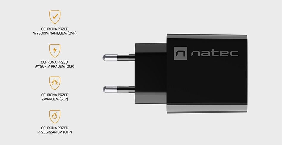 Masz dość powolnego uzupełniania energii i chcesz, aby Twoje urządzenia naładowały się znacznie szybciej? Z Natec Ribera to możliwe. Naszą ładowarkę wyposażyliśmy w gniazdo USB Typu A zgodne ze standardami szybkiego ładowania takimi jak: Quick Charge 3.0, Samsung AFC oraz Huawei FCP / SCP. W połączeniu z maksymalną mocą 18 W zapewnia to ponadprzeciętne efekty i dużą oszczędność czasu w porównaniu do klasycznych rozwiązań.