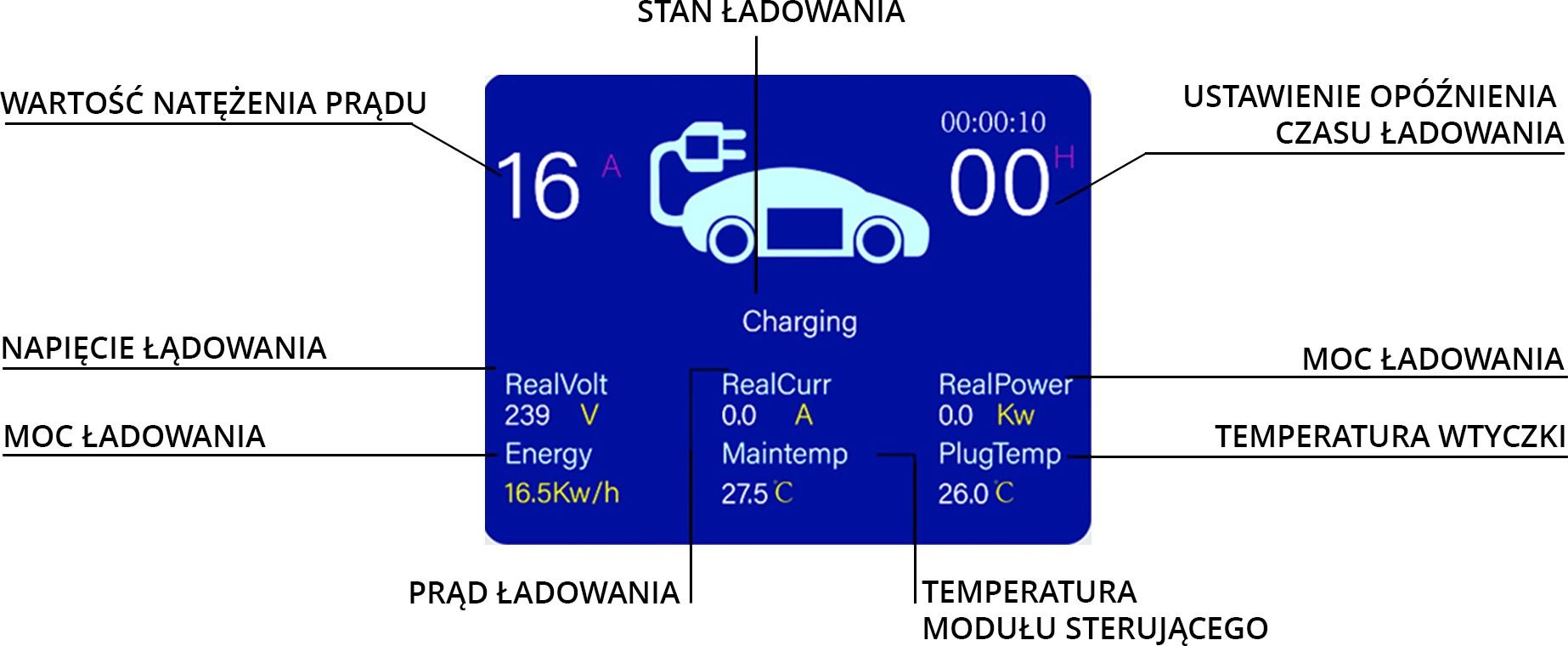 - monitorować temperaturę pracy ładowarki w czasie rzeczywistym dzięki wbudowanemu czujnikowi temperatury wtyczki - ładowarka natychmiast przerwie pracę, jeśli zostanie przekroczona bezpieczna wartość i automatycznie wznowi pracę po powrocie temperatury do normalnego poziomu