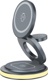 Stacja ładująca Quik QW-700 pozwala na jednoczesne ładowanie trzech różnych urządzeń. Oferuje moc ładowania do 15W dla smartfonów, 5W dla słuchawek bezprzewodowych oraz 2.5W dla Apple Watch. Dzięki temu możesz być pewien, że wszystkie Twoje urządzenia będą zawsze gotowe do użycia, co jest niezwykle praktyczne w codziennym użytkowaniu.