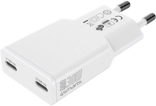 Ładowarka sieciowa 4smarts FlatPlug Slim Dual 30W GaN 2xUSB-C biały