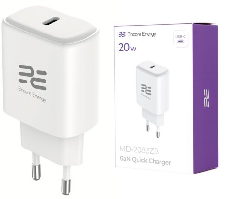 Ładowarka sieciowa GaN 20W USB-C QC PD Encore Energy MD-2083ZB standard