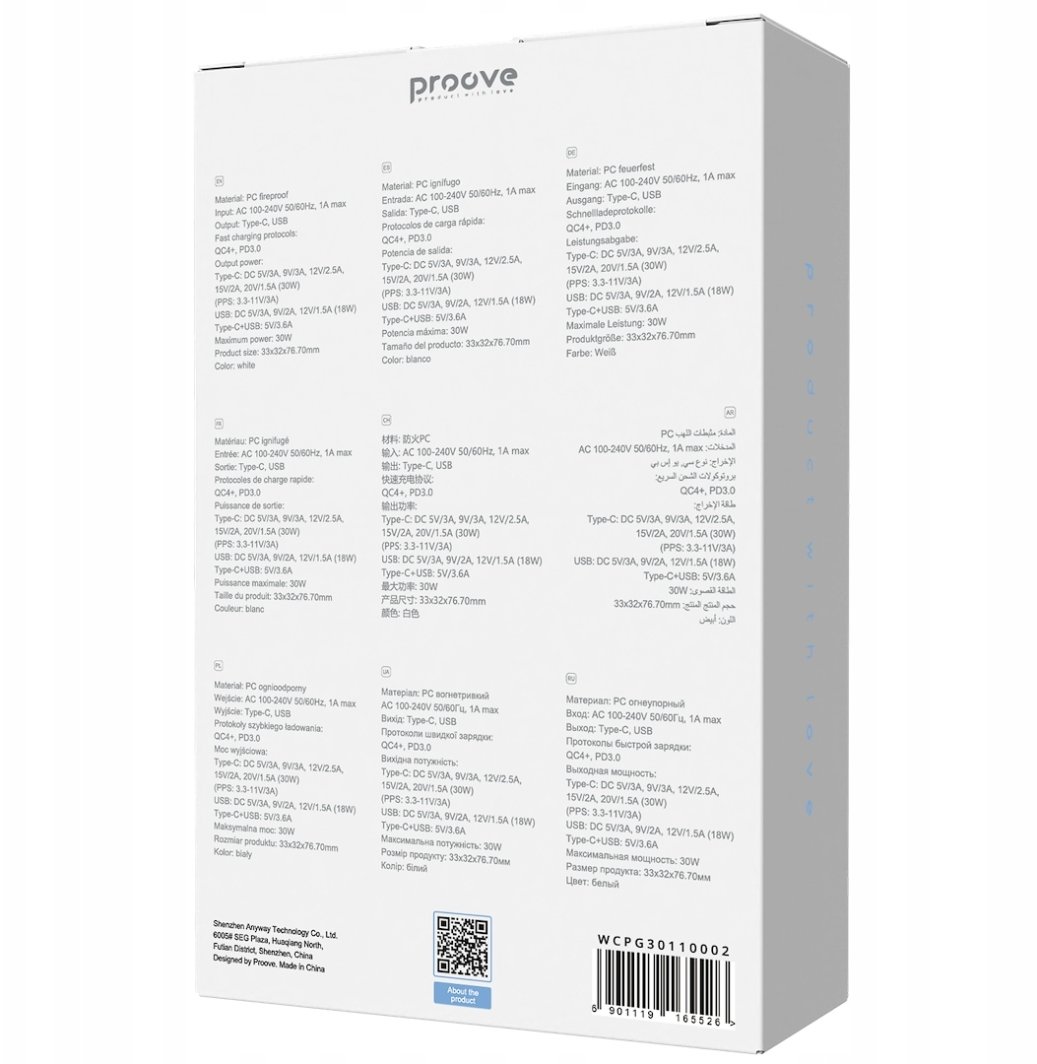 Ładowarka sieciowa Proove Pocket GaN 30W white (Type-C + USB)