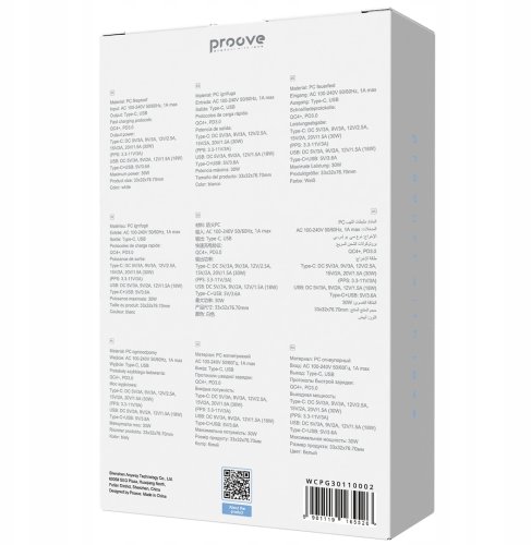 Proove Pocket GaN 30W wyróżnia się nowoczesnym, minimalistycznym designem w kolorze białym, który doskonale wpisuje się w estetykę współczesnych urządzeń elektronicznych. Jej kompaktowe wymiary sprawiają, że jest łatwa do przenoszenia, co czyni ją idealnym towarzyszem w podróży.