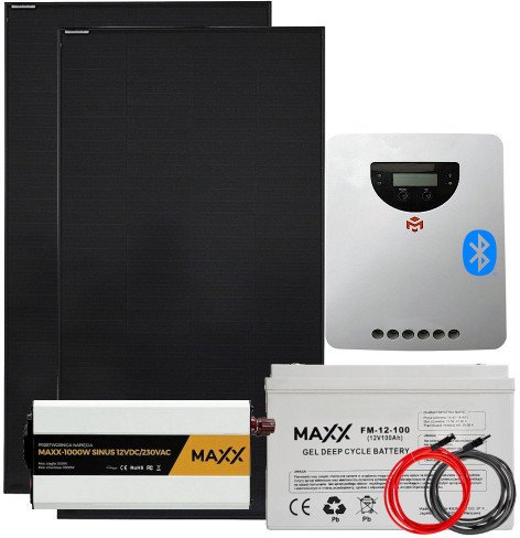 W skład zestawu wchodzą wszystkie niezbędne akcesoria, w tym kable solarne o średnicy 6mm² i długości 5 metrów, co ułatwia montaż. Dodatkowo, zestaw zawiera przetwornicę napięcia Maxx Sinus 12V 230V 500W oraz akumulator żelowy Maxx 80Ah 12V, co czyni go kompletnym rozwiązaniem do pozyskiwania energii słonecznej.