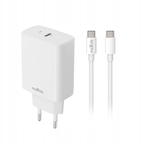 Ładowarka TelForceOne Maxlife ładowarka sieciowa PD QC MXTC-10-20C 1x USB-C 20W biała + kabel USB-C - USB-C 20W