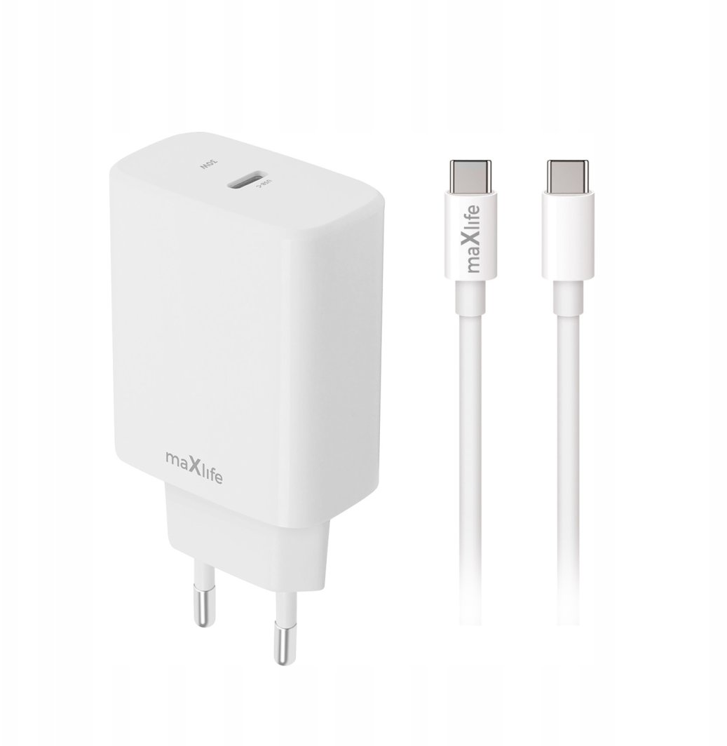 Ładowarka TelForceOne Maxlife ładowarka sieciowa PD QC MXTC-10-30C 1x USB-C 30W biała + kabel USB-C - USB-C 60W