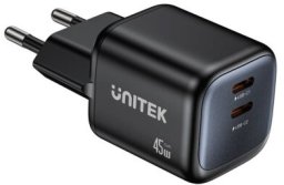 Ładowarka Unitek UNITEK ŁADOW. SIECIOWA 2X GAN 45W, 2XUSB-C PD 3.0, QC, CZARNA