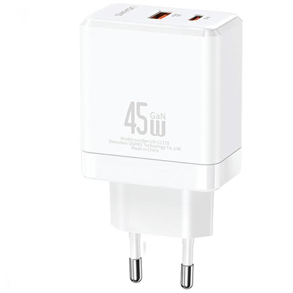 Ładowarka Usams Ładowarka sieciowa USB-C+USB-A 45W GaN PD 3.0