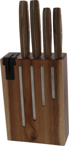 Blok noży wykonany jest z drewna akacjowego, które nie tylko zachwyca pięknym, naturalnym kolorem, ale także wyróżnia się właściwościami antybakteryjnymi oraz odpornością na gnicie. Dzięki temu, blok nie tylko prezentuje się elegancko, ale również zapewnia długotrwałe użytkowanie.