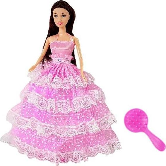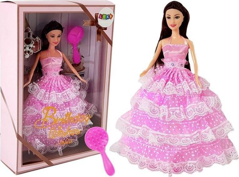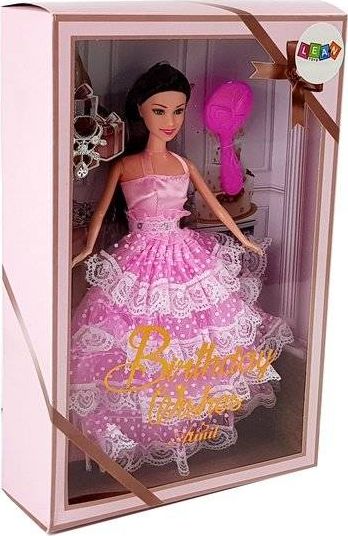 W środku znajduje się piękna, ciemnowłosa lalka w jasnoróżowej sukni z elementami koronkowymi. Żeby wyglądała jeszcze piękniej to na jej szyi widnieje piękna kolia , różowe szpilki oraz szczotka. W wolnej chwili twoja mała dziewczynka będzie mogła tworzyć niesamowite fryzury. Suknia, w którą jest ubrana idealnie pasuje na imprezę lub bal. Teraz jedynie twoja pociecha musi wyszykować swoją lalkę i oczywiście siebie i wybrać się na wielki bal, na jaki tylko wyobraźnia pozwoli. Twarz lalki ozdobiona jest kobiecym, delikatnym makijażem.