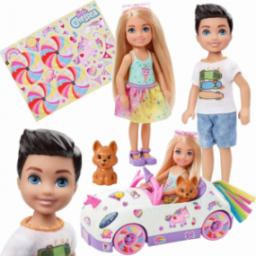 Barbie Club Chelsea zestaw tęczowe auto + 2 lalki