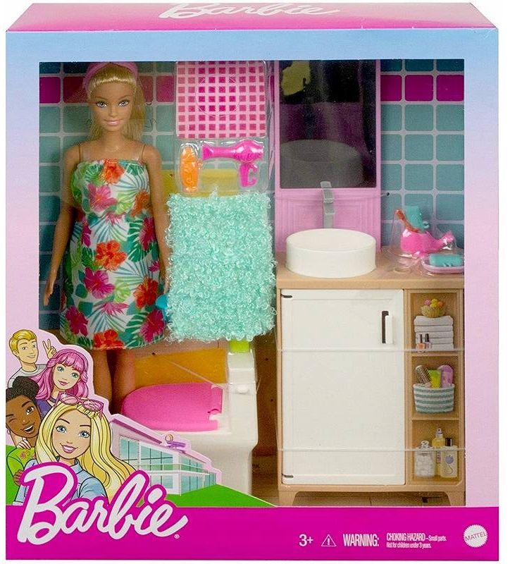 Barbie Lalka z mebelkami łazienkowymi (GRG87)