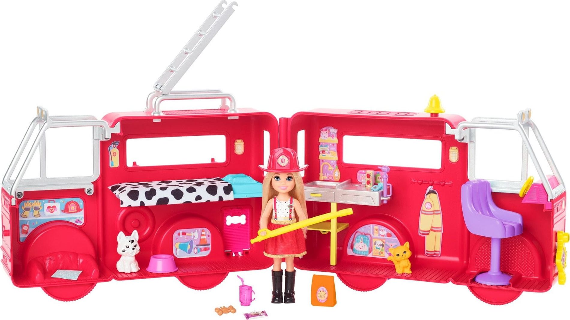 Dzieci mogą pomóc Chelsea uratować dzień swoim własnym wozem strażackim. Kiedy Chelsea i jej szczeniak przybywają na miejsce zdarzenia, dzieci mogą otworzyć wóz strażacki i odkryć łóżko piętrowe, drabinę ratunkową, składany wąż strażacki, zlew, apteczkę i inne akcesoria.
