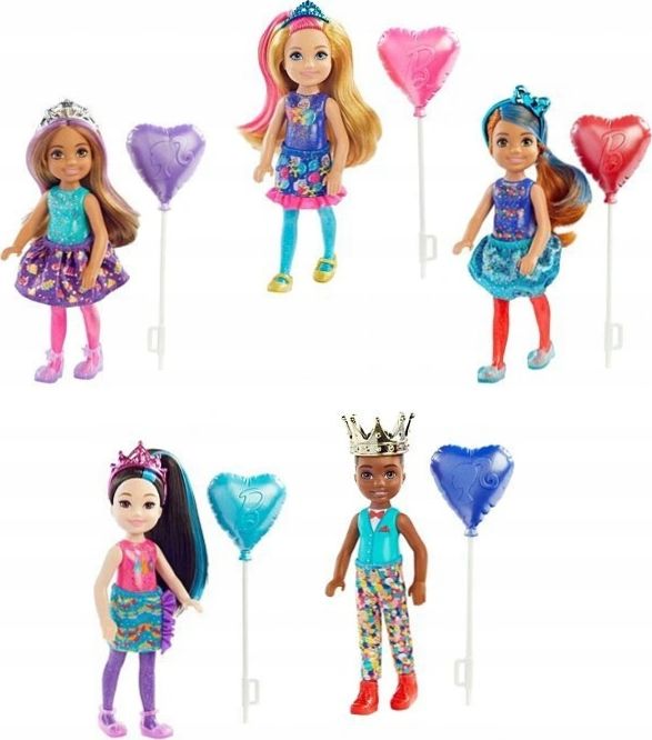 Każda lalka ma inny kolor oczu, skóry i nóg oraz inną fryzurę i gorsecik, a to jeszcze nie koniec niespodzianek. Otwórz torebki, by znaleźć spódniczkę lub spodnie, parę bucików, tiarę lub koronę i balonikowe akcesorium. Użyj zimnej wody, aby zmieniać kolor na włosach lalki - tę niezwykłą transformację można powtarzać wiele razy! Każda seria z linii Chelsea Color Reveal ma wyjątkowy motyw - ta stawia na imprezowy styl. Seria imprezowa jest pełna kolorów, błyszczących ozdób i konfetti. Do przechowywania akcesoriów użyj tubki z zestawu.