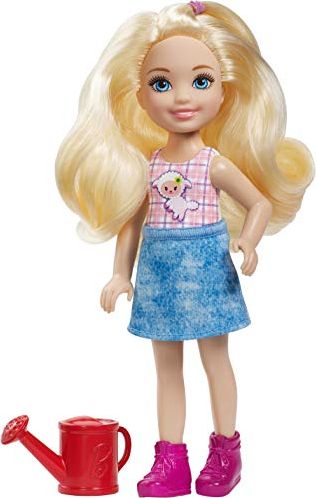 Dzieci mogą trzymać konewkę za uchwyt na ramieniu lalki Chelsea, aby odtworzyć dzień na farmie. Chelsea jest doskonale ubrana na cały dzień w ogrodzie z naklejką z jagnięciną na górze i wyblakłą dżinsową spódnicą. Całość dopełniają różowe buty.
