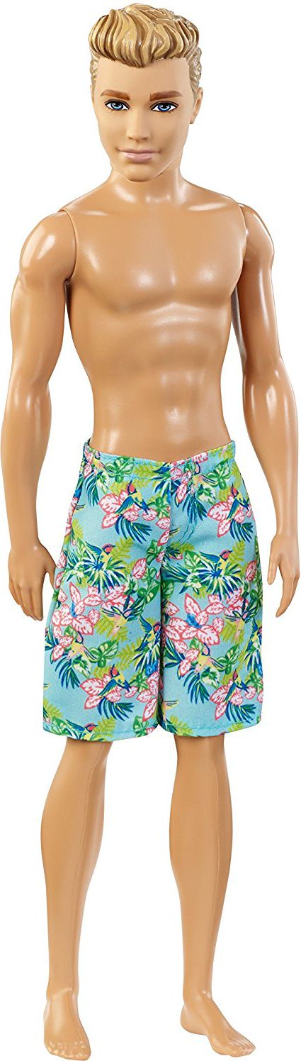 Przystojny Ken w wakacyjnym stroju. Lalka ubrana jest w kąpielówki w kwiatowe, letnie wzory.