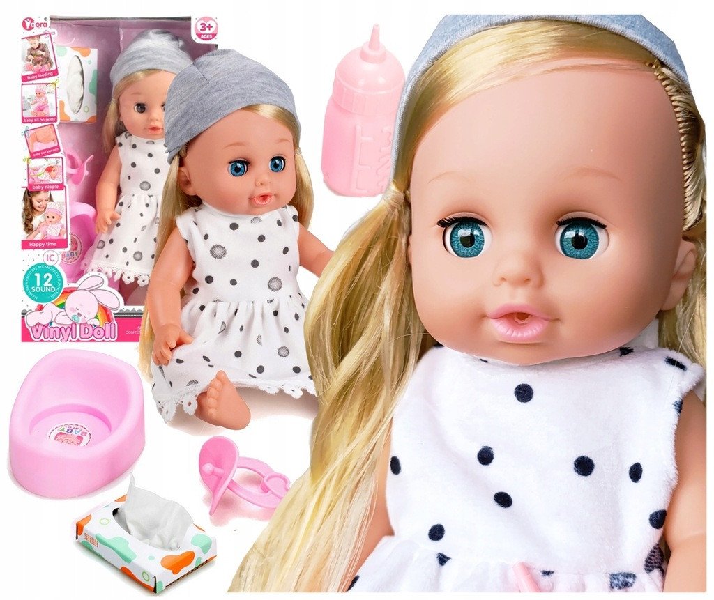W zestawie z lalką znajdują się akcesoria, takie jak butelka, smoczek oraz nocnik, które wspierają naukę samodzielności i rozwijają umiejętności opiekuńcze. Dzięki nim dzieci mogą wcielać się w rolę małych mam, co dodatkowo pobudza ich wyobraźnię.