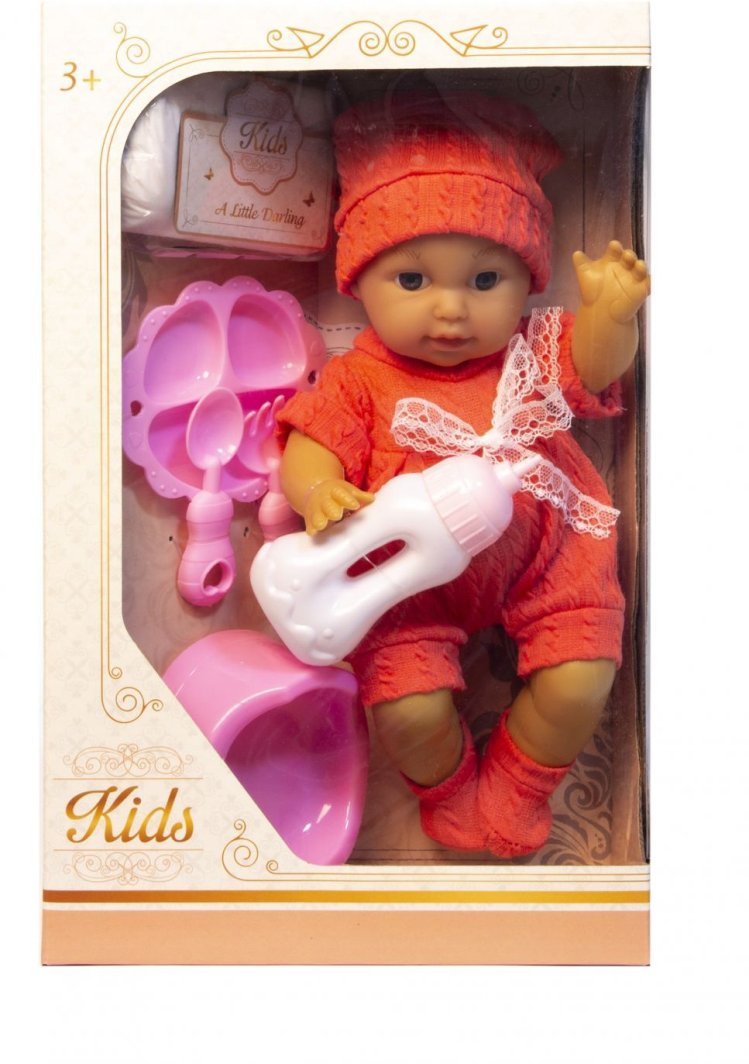 Uroczy bobas, który pije z butelki i siusia do nocnika. W skład zestawu wchodzi lalka o wysokości około 29 cm, ubrana w mięciutkie dzianinowe ubranko w kolorze różowym oraz akcesoriów:
