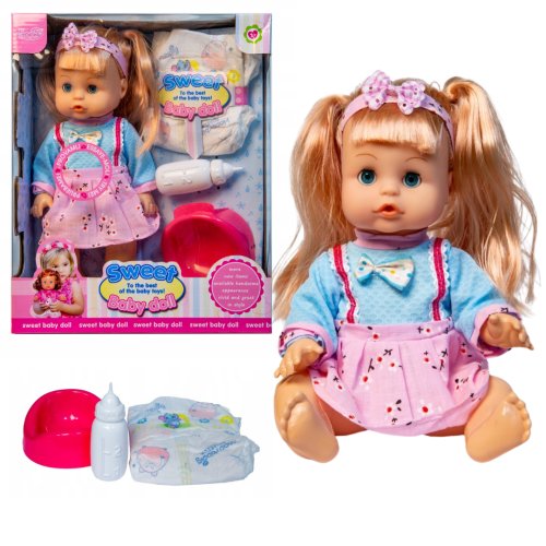 Lalka w różowej sukience z 3 akcesoriami - mówi, śmieje się i siusia