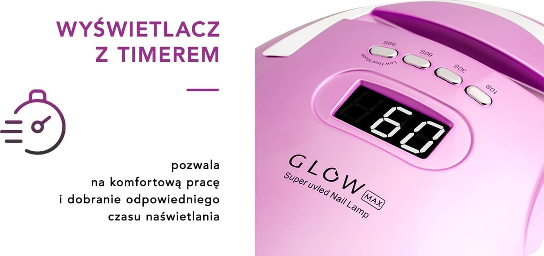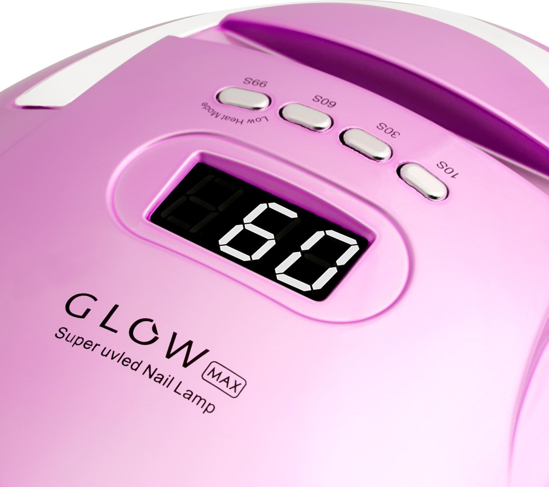 Wyposażona jest w aż 57 odpowiednio rozmieszczonych diod LED (bez tzw. martwej strefy) o łącznej mocy 220 W, zapewniając idealne utwardzanie żeli oraz lakierów hybrydowych. Model Glow F2 ma zamknięty kształt, tzw. budkę, co pozwala na równomierne i dokładne utrwalanie stylizacji paznokci. Zastosowana w tym urządzeniu technologia Dual Led sprawia, że diody emitują światło o dwóch długościach fali, nie męcząc oczu i zapewniając szerokie spektrum działania. Dzięki zastosowanym rozwiązaniom lampa szybko i prawidłowo utwardza nawet najbardziej wymagające produkty, docierając również do trudniej dostępnych miejsc na płytce paznokcia.