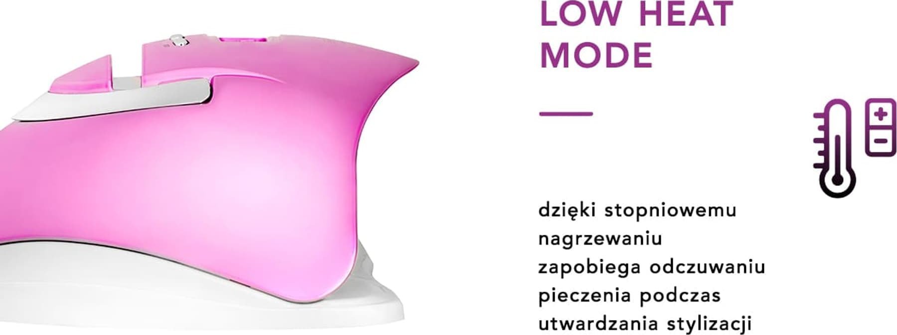 Koniec z nieprzyjemnym pieczeniem podczas utrwalania stylizacji! Wspomniany już system „Low Heat Mode” sprawia, że w trakcie utwardzania produktów na paznokciach urządzenie stopniowo zwiększa swoją moc, tym samym wolniej się nagrzewając. Zapobiega to odczuwaniu gorąca w trakcie naświetlania. Jest to funkcja niezastąpiona zwłaszcza w trakcie utwardzania żeli, co często powoduje dyskomfort przy użyciu innych lamp dostępnych na rynku.