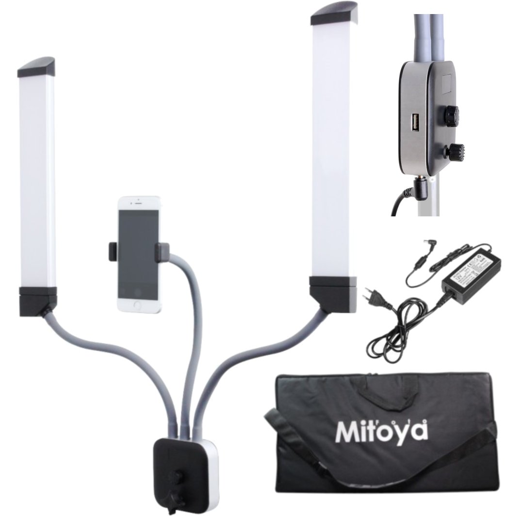 Lampa kosmetyczna LED 2w1 MITOYA MTY176 to znakomite rozwiązanie dla każdego, kto poszukuje wszechstronnego oświetlenia w swoim miejscu pracy. Dzięki nowoczesnemu designowi oraz funkcjonalności, ta lampa łączy w sobie funkcje oświetleniowe oraz możliwość montażu smartfona, co czyni ją idealnym narzędziem dla profesjonalistów zajmujących się kosmetyką, makijażem oraz nagrywaniem filmów.