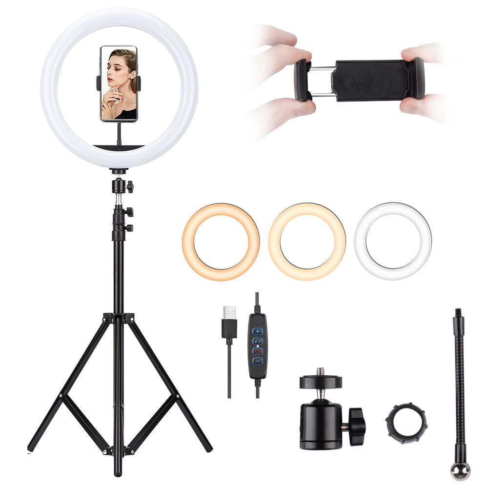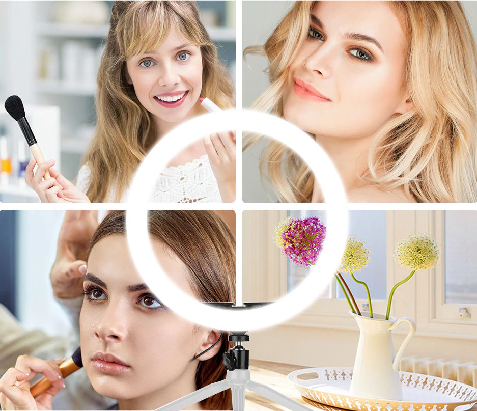 Produkt spełnia tak wiele funkcji, że trudno opisać je wszystkie. Lampa prezentuje technologię “ring led”, dzięki której oczy na naszych zdjęciach wychodzą zjawiskowo. Twarz oświetlana jest równo i bez dużych kontrastów. Lampa umożliwia dobór odpowiedniej mocy i barwy dzięki wbudowanemu w przewód pilotowi. Dobierzesz odpowiedni kolor oświetlenia (od ciepłej do zimnej) w ułamku sekundy. Statyw o bardzo dużym rozstawie i regulacji wysokości z pewnością spełni oczekiwania nawet wysokich osób. Moc lampy (13W) w technologii LED, zapewni ci optymalną moc.