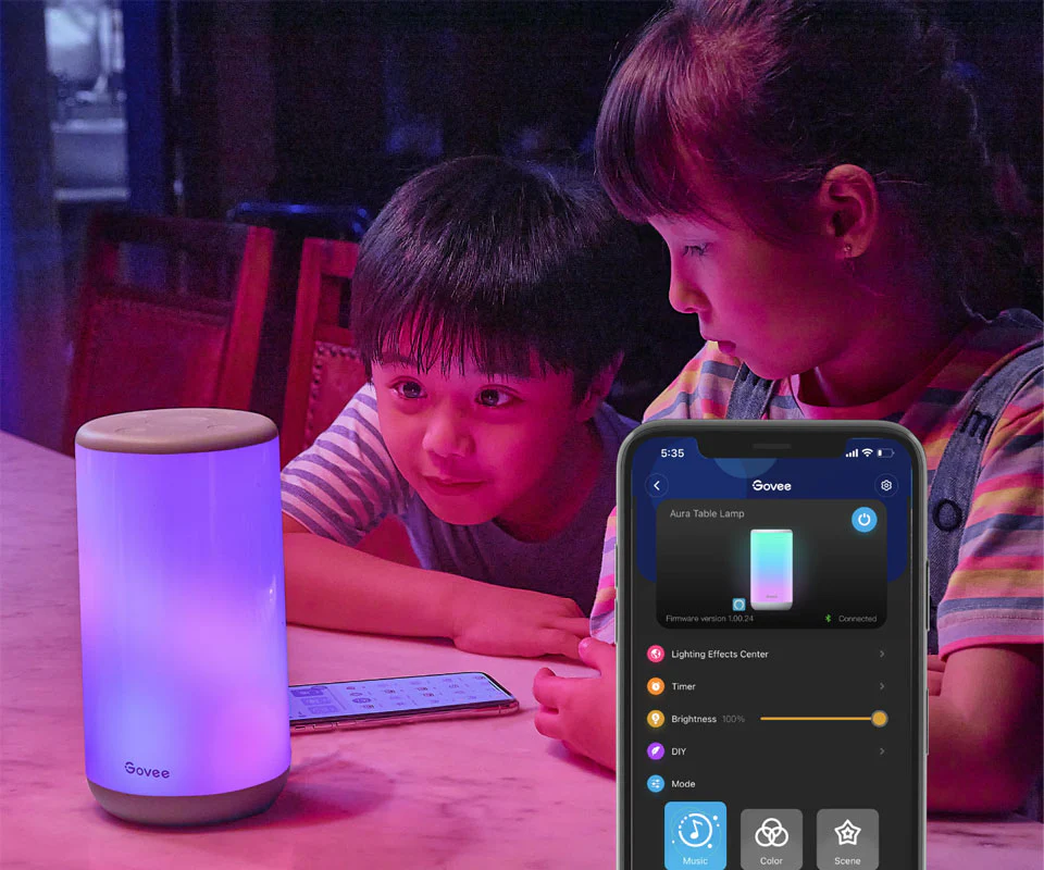 Govee Aura jest kompatybilny zarówno z Alexą, jak i Asystentem Google. Włącz/wyłącz lampę stołową, dostosuj jasność lub zmień kolory za pomocą prostych poleceń głosowych.