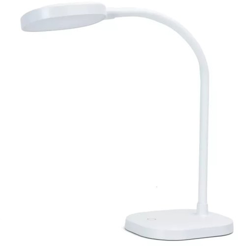 Elastyczne ramię umożliwia pełną regulację kierunku światła, obracając klosz o 360deg; Stabilność lampki zapewnia odpowiednio wyważona podstawa. Kształt klosza gwarantuje szerokie rozproszenie światła, oświetlając dużą powierzchnię.