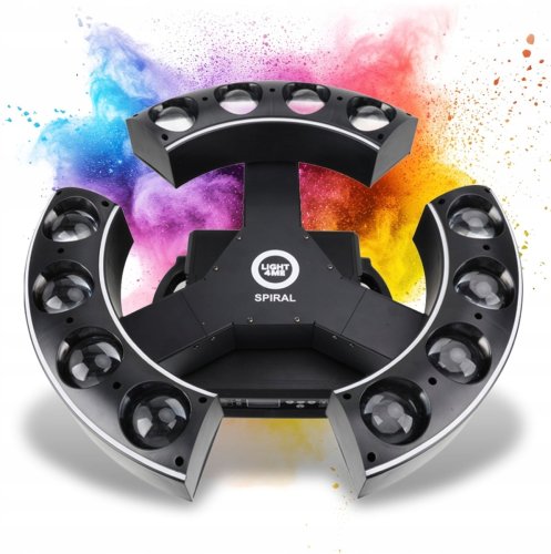 Odkryj moc i kreatywność z Light4Me Spiral, nowoczesnym ruchem efektem oświetleniowym LED DMX, który z pewnością przyciągnie uwagę na każdym wydarzeniu. Dzięki 12 diodom LED 20W RGBW oraz 39 diodom SMD RGB, to urządzenie stanowi doskonałe rozwiązanie dla DJ-ów, firm eventowych oraz klubów muzycznych, które pragną wzbogacić swoje występy o dynamiczne animacje świetlne.