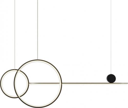 Minimalistyczna lampa ledowa NEW AGE zbudowana jest z przenikających się kół ledowych oraz poziomej listwy.
