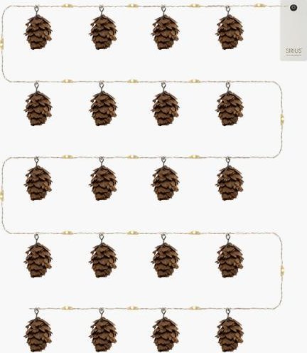 Odkryj magię świątecznych dekoracji z lampkami choinkowymi Sirius Molly Cone. Ten wyjątkowy łańcuch świetlny wprowadza do Twojego wnętrza urok dzięki brązowym szyszkami, które otaczają 20 małych żarówek LED. Idealne do stworzenia przytulnej atmosfery, lampki te doskonale sprawdzą się nie tylko w okresie świątecznym, ale również przez cały rok.
