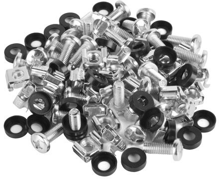 Przy montowaniu sprzętu i akcesoriów w szafie rack warto mieć pod ręką komplet śrubek i nakrętek przeznaczonych właśnie do tego celu. Najczęściej występującymi standardami stosowanymi przy sprzęcie rack są standardy M5 i M6, w których liczba oznacza średnicę gwintu w milimetrach. Przed zakupem należy upewnić się jaki rozmiar śrub będzie dla nas odpowiedni.