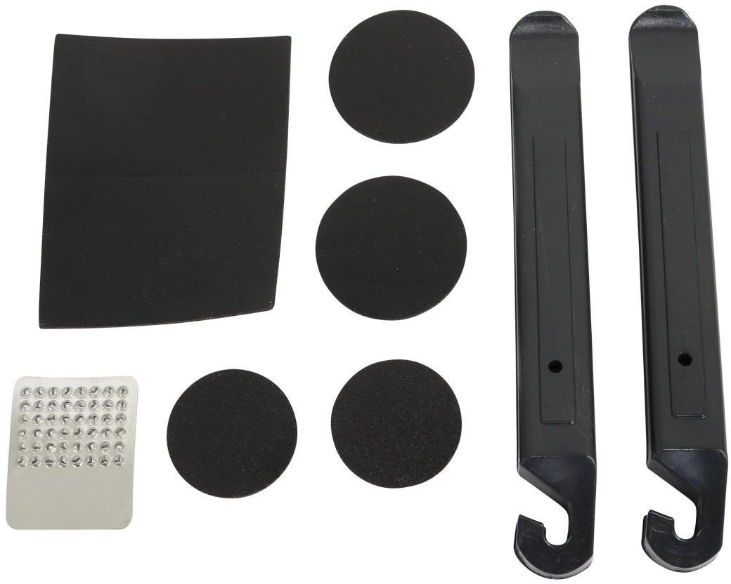 Zestaw składa się z 9 elementów, które zapewniają kompleksowe wsparcie w naprawie opon: