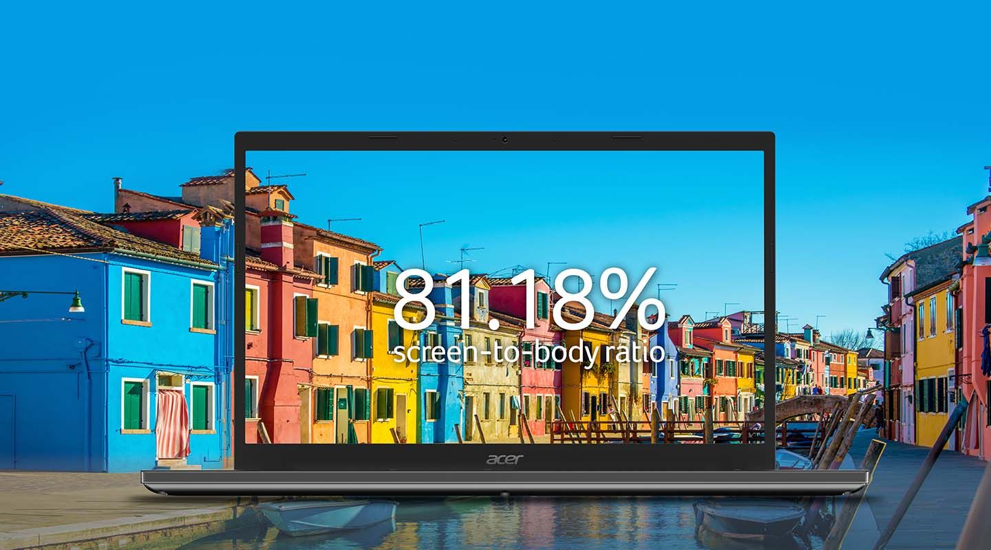 Możesz tworzyć na wyświetlaczu FHD lub QHD z opcjonalnym ekranem dotykowym. Wyświetlacz zajmuje 81,18% powierzchni obudowy i został wyposażony w technologie obrazu Acer, które zapewniają dynamiczną optymalizację barw i poprawiają wygodę oglądania.