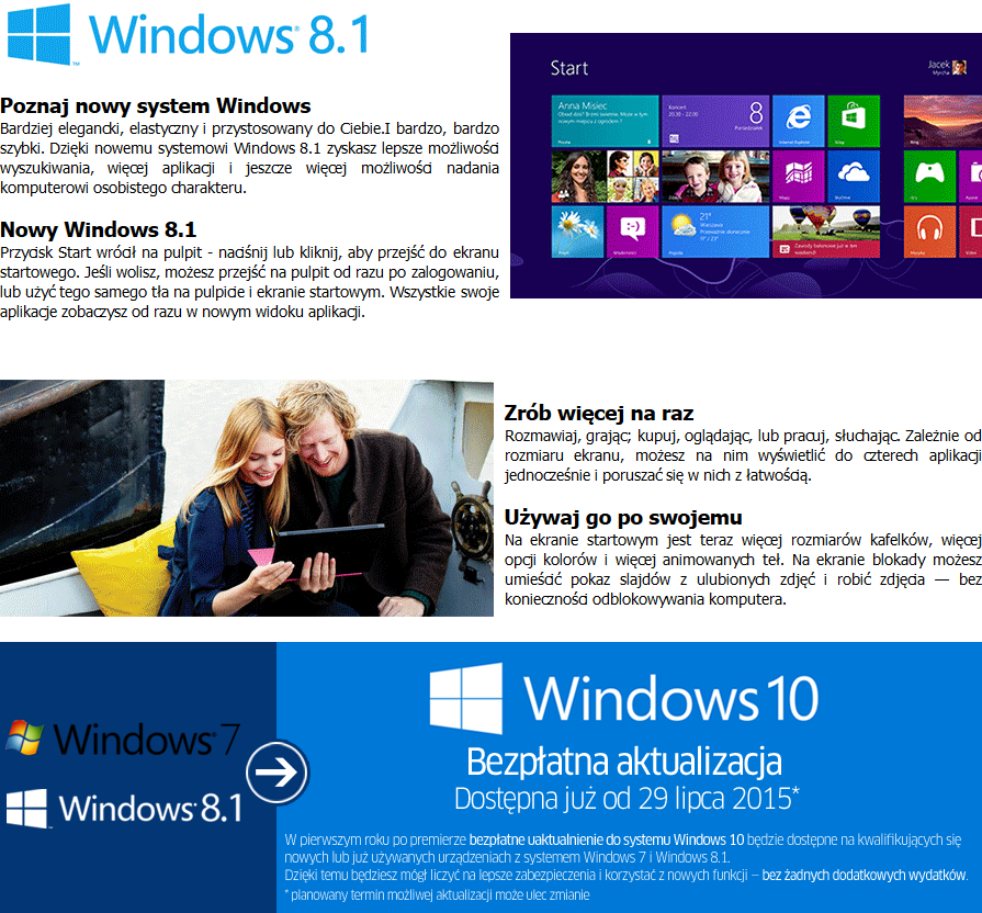 Komfortowy system operacyjny Windows 8.1 oferuje użytkownikom nowoczesny interfejs Modern UI. Dostęp do wielu aplikacji oraz możliwość podziału ekranu to dodatkowe udogodnienia, które usprawniają codzienne korzystanie z komputera. Szybki dostęp do nowych aplikacji i programów jest możliwy dzięki Windows Store. System operacyjny Windows 8.1 uruchamia się błyskawicznie, a standardowe aplikacje wyróżniają się rozbudowaną funkcjonalnością. Jeśli chcesz być na bieżąco z informacjami ze świata, portali społecznościowych lub giełdy, wystarczy zadbać o połączenie internetowe – wszystkie programy i aplikacje widoczne na ekranie startowym na bieżąco aktualizują swe dane.