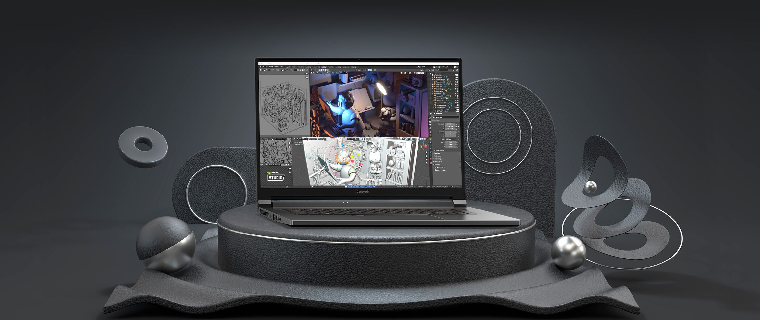 Przyspiesz swoją twórczość dzięki układom graficznym GeForce® RTX. Funkcja śledzenia promieni z przyspieszeniem sprzętowym i sztuczną inteligencją. Wspierana przez platformę NVIDIA Studio. Zaprojektowana z myślą o wydajności.