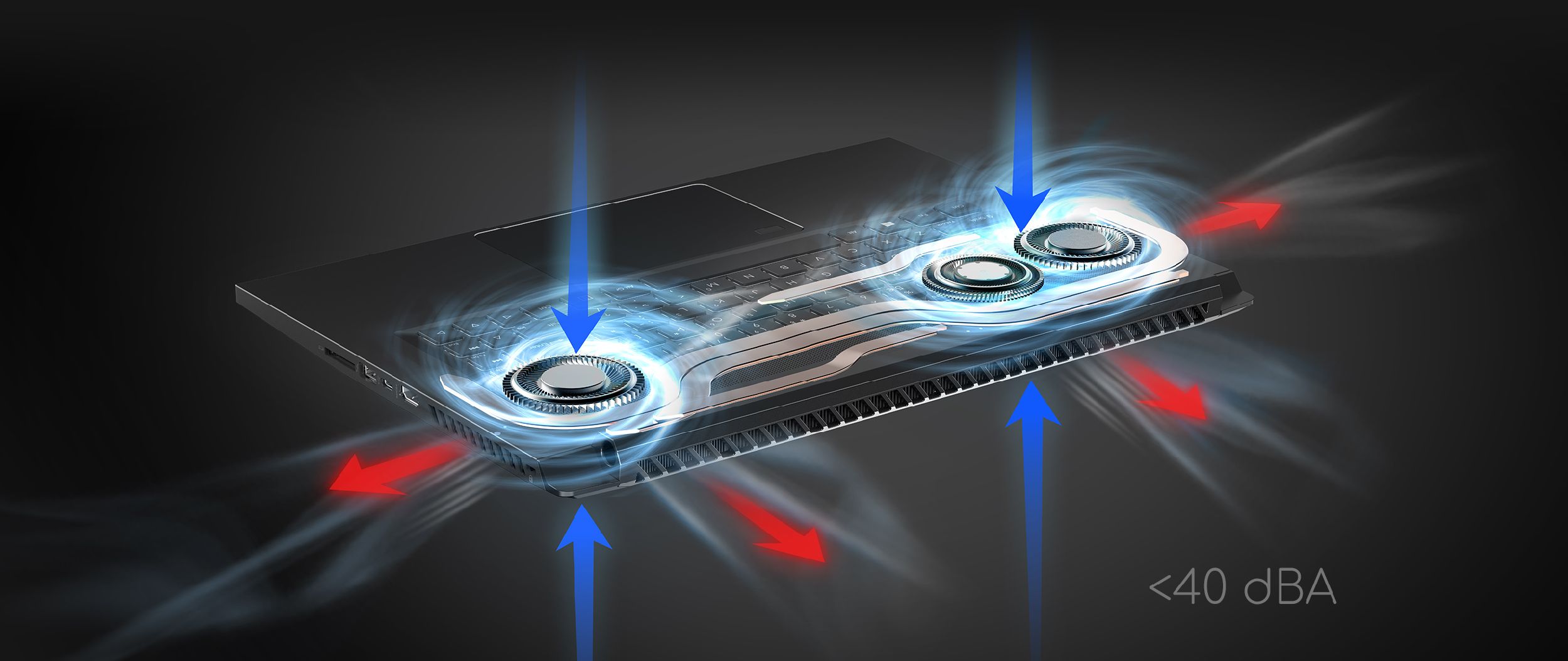 Cisza i wygoda są niezbędne podczas pracy nad istotnym elementem projektu. System z trzema wentylatorami to połączenie najnowszej technologii AeroBlade™ 3D piątej generacji i naszej wyjątkowej technologii chłodzenia, która wytwarza wirowy przepływ powietrza (Vortex Flow) wewnątrz urządzenia. Dzięki temu hałas nie przekracza 40 dBA, a podzespoły się nie nagrzewają, nawet podczas długiej pracy.
