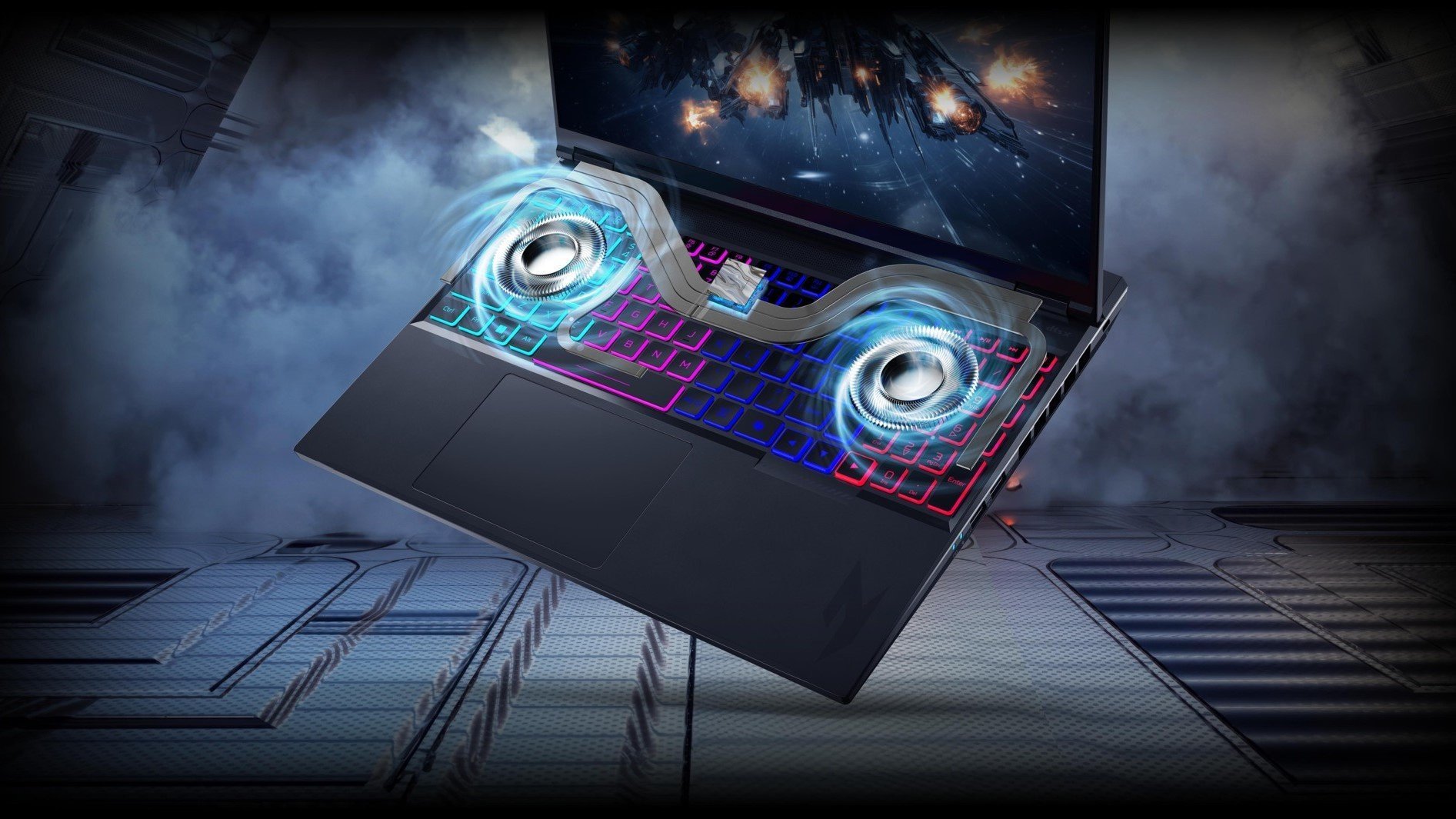 System chłodzenia zaprojektowany z myślą o intensywnym gamingu: cztery strategiczne otwory wentylacyjne, wektorowe ciepłowody, zaawansowana pasta z ciekłego metalu i inteligentne sterowanie temperaturą. Dzięki temu laptop zachowuje wysoką wydajność nawet przy długotrwałym obciążeniu i zapobiega przegrzewaniu kluczowych komponentów – gwarantując płynność i stabilność w każdej rozgrywce.