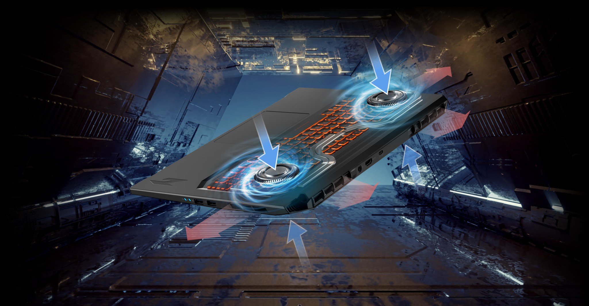 Podwójny wentylator, cztery wloty i cztery wyloty powietrza – ten system chłodzenia został zoptymalizowany tak, aby skutecznie odprowadzać ciepło. Dzięki temu nawet długie sesje gamingowe i intensywna praca nie zakłócą wydajności laptopa.