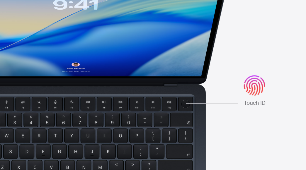 Bezpieczeństwo użytkownika jest priorytetem, dlatego MacBook Air wyposażono w czytnik Touch ID zintegrowany z klawiaturą Magic Keyboard. Pozwala on na błyskawiczne odblokowanie laptopa, bezpieczne logowanie do kont oraz autoryzację płatności za pomocą jednego dotknięcia palca. Wbudowane mechanizmy szyfrowania oraz zaawansowana ochrona przed wirusami sprawiają, że Twoje dane są chronione przed niepowołanym dostępem. Automatyczne aktualizacje systemu zapewniają, że Twoje zabezpieczenia są zawsze na bieżąco.